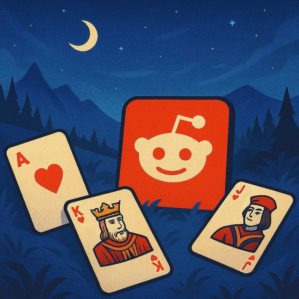 Visit our Reddit community, r/Euchreverse, for in depth strategy posts, detailed hand analyses, and community highlights. It is a welcoming place to ask questions, share insights, and learn from experienced players. The discussions are thoughtful, the advice is practical, and the focus is always on growing your understanding of Euchre.