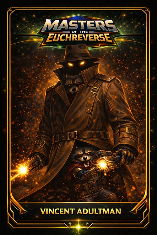 In a world where the cards are dealt by fate, one band of intergalactic misfits is bound by destiny—sworn to protect the sanctity of the greatest game ever played, one trick at a time. Together, they go alone. They are… THE MASTERS OF THE EUCHREVERSE.